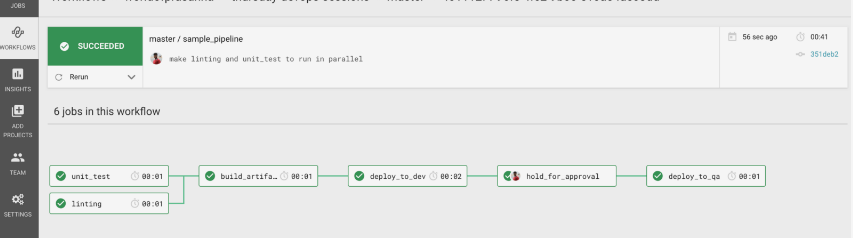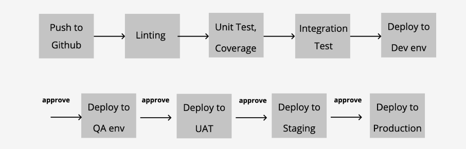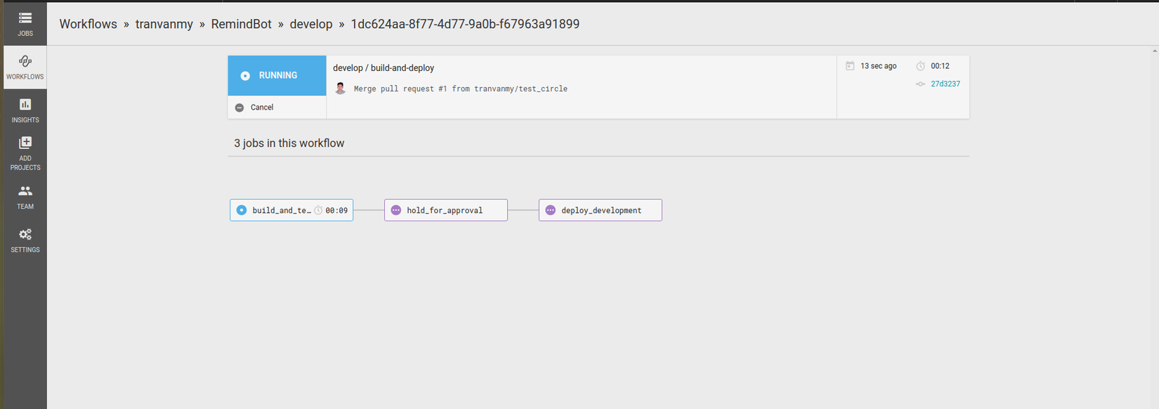 Phần trên là setup CI ok rồi đúng không, sau khi check CI tất cả ok thì auto deploy thôi, =)) mình thấy cái phần CD của thằng này khá là ổn, trong file config mình có thể tùy biến được rất nhiều thứ, như CI pass thì phải approved mới được deploy lên môi trường Development, rồi có phần require chạy lần lượt, Deploy xong môi trường này mới được deploy môi trường khác, Giao diện để mình có thể hình dung được cách tiến trình của nó cũng khá trực quan .