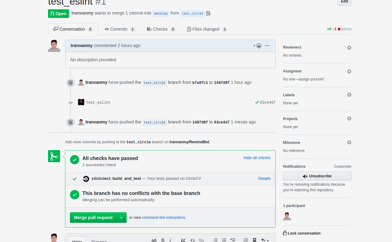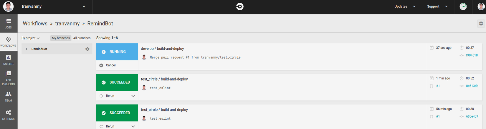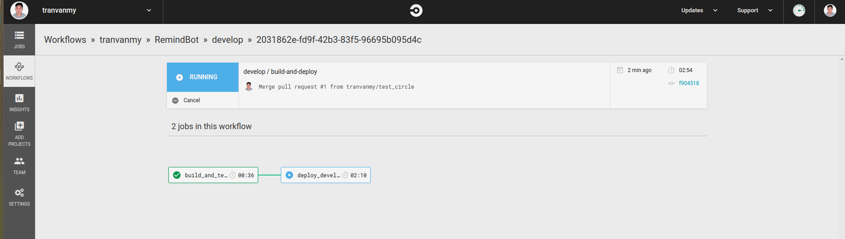 . OK ngon hàng, đẩy code lên nào , mọi người để lên cái nhánh mn đang code, chờ nó pass hết thì merged vào develop nhé. Khi merged vào thì nó sẽ có 1 bản build