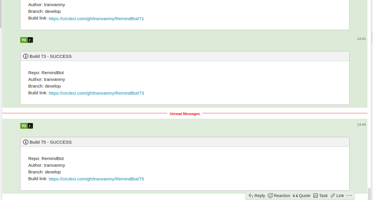 Build link: https://circleci.com/gh/tranvanmy/RemindBot/$CIRCLE_BUILD_NUM