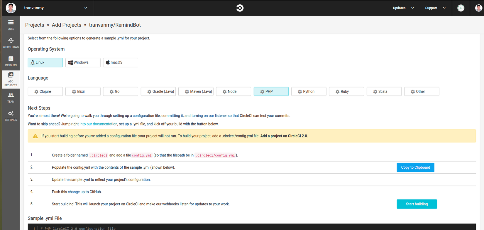 Nhưng đến với CircelCI thì mọi người build thoải mái nhé, chức năng và giao diện theo mình đánh giá còn sịn sò hơn SunCI nữa. Ok lan man thế thôi chúng ta bắt đầu thôi.