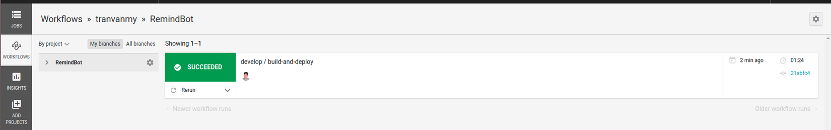 chạy thằng build_and_test => deploy_development (Yêu cầu thằng build_and_test phải pass tất cả rồi mới được chạy thằng deploy, và ở thằng deploy này chỉ chạy khi code được update ở nhánh develop)