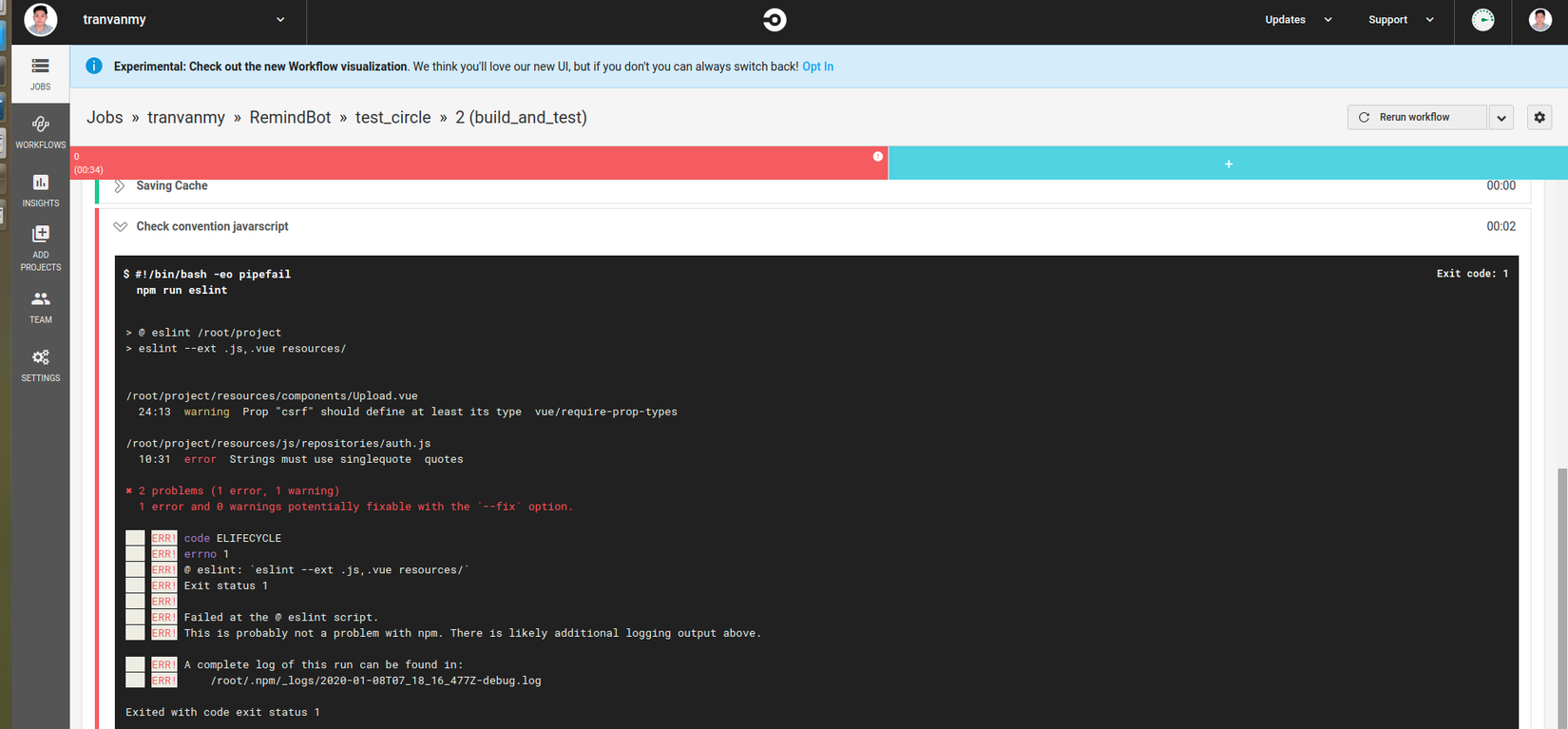 Tỷ dụ như cái này bị fail eslint thì mình chỉ cần vào xem nó fail chỗ nào rồi sửa và push lại thôi