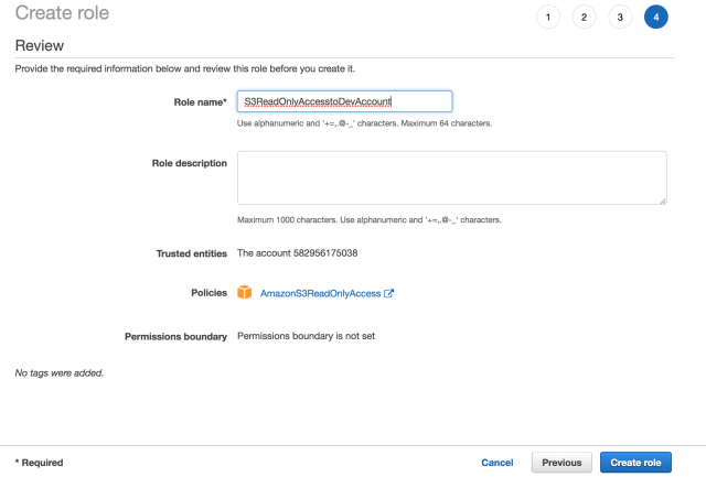 - Role : Role mà chúng ta đã tạo trong Bước 1: S3ReadOnlyAccesstoDevAccount