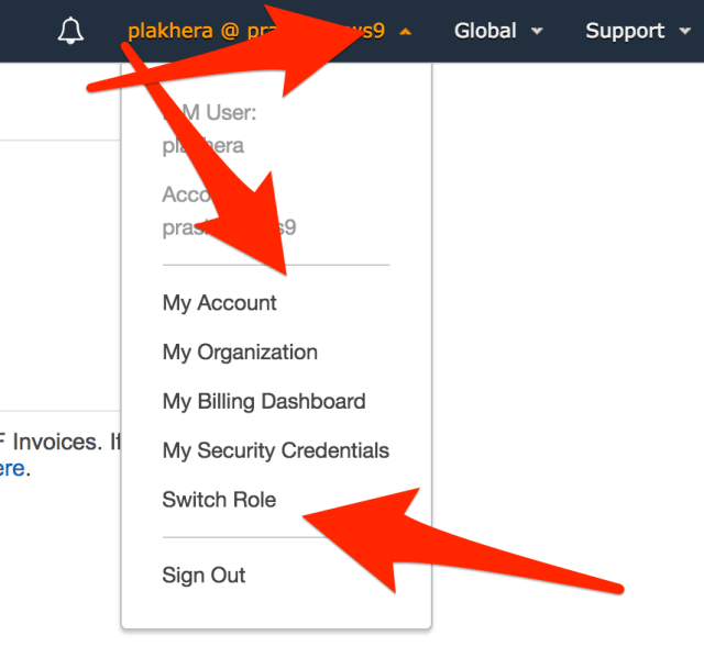 NOTE : không thể chuyển role khi bạn đang signed với tư cách là người dùng root tài khoản AWS.