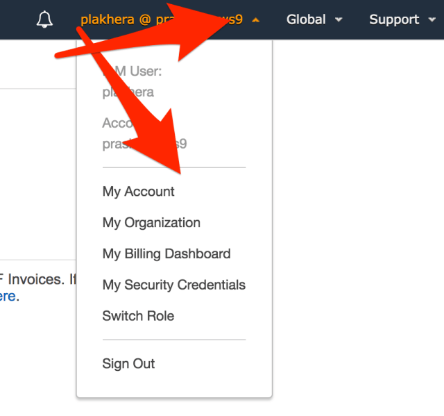 - Để lấy ID tài khoản (Nhấp vào người dùng IAM trên bảng điều khiển và nhấp vào My Account )