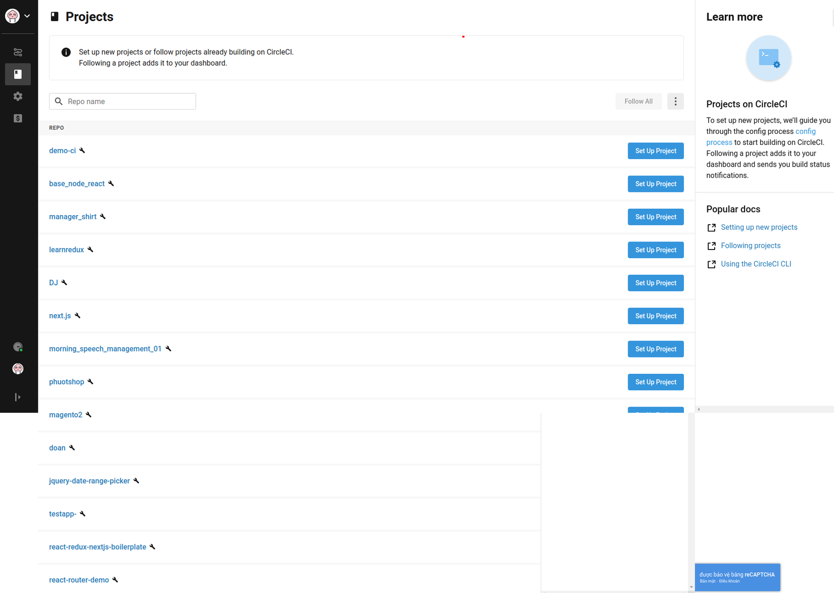 Mình sẽ lựa chọn project đã tạo phía trên demo-ci sau đó click setup project