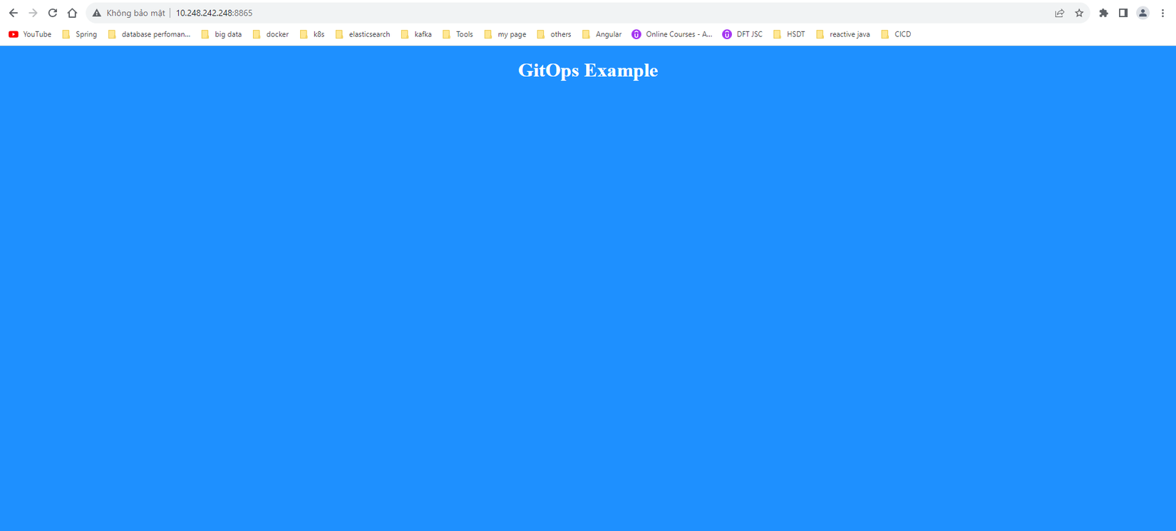 <!DOCTYPE html> <html> <body style="background-color:DodgerBlue; text-align: center"> <h1 style="color: white">GitOps Example</h1> </body> </html> - Dockerfile để tạo Docker image, sử dụng Nginx làm web server