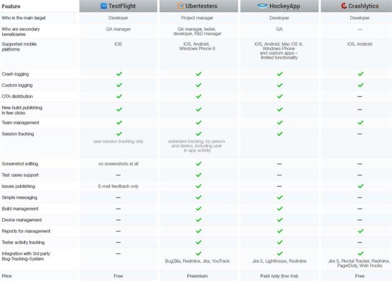 Cũng như Crashlytics, nền tảng Ubertesters là miễn phí. Nó được dành cho tất cả các loại ứng dụng di động. Nhưng không giống như Crashlytics, nó cung cấp những dịch vụ rộng hơn so với HockeyApp, bao gồm ghi nhận lịch sử sự cố crash, chỉnh sửa ảnh chụp màn hình, hỗ trợ test cases, v.v.
