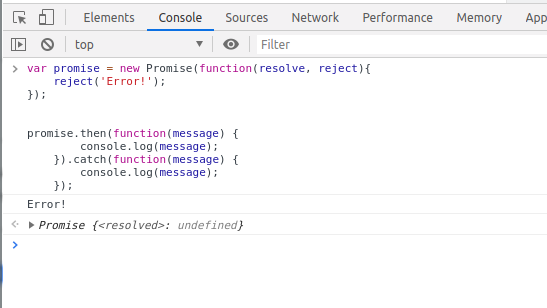 Hàm then() có hai 2 tham số callback là success và error nhưng bạn cũng có thể sử dụng hàm catch để bắt lỗi :