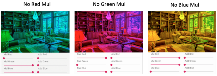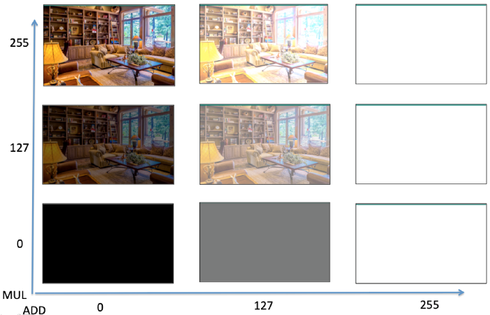 - Giá trị mul chỉ đơn giản là làm cho hình ảnh tối hơn (khi mul = 0) và đúng với màu gốc của nó (khi mul = 255), như hiển thị bên dưới.