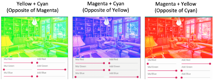 Nếu chúng ta chỉ trộn hai màu, nó sẽ giống như lọc đi một màu, như bên dưới: