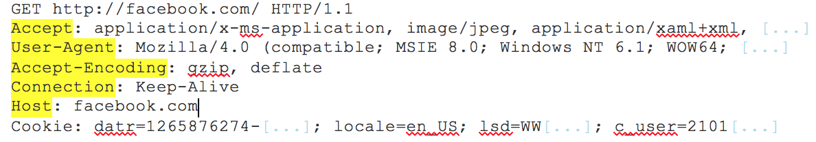 Khi kết nối TCP đã được thiết lập, trình duyệt sẽ gửi một GET request yêu cầu trang web maps.google.com. Nếu bạn nhập thông tin đăng nhập hoặc gửi một form, POST request sẽ được sử dụng. Request sẽ chứa một số thông tin bổ sung như định danh trình duyệt, kiểu request được chấp nhận, ... Nó cũng sẽ gửi kèm các thông tin từ cookie mà trình duyệt lưu cho tên miền này.