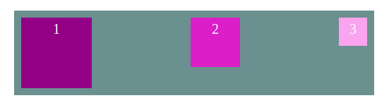 - justify-content : căn khoảng cách giữa các khối con với nhau, giữa các khối con với chính khối cha.