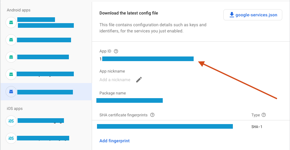 | app | chính là Firebase app ID. bạn có thể tìm thấy nó trong Filebase console |