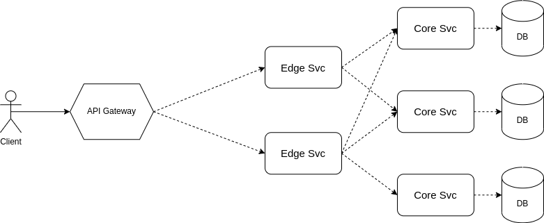 Thiết kế như này thì việc gọi chéo sẽ chỉ diễn ra tại các edge service và sẽ dễ dàng tối ưu connection, timeout, retry, failover,... hơn.