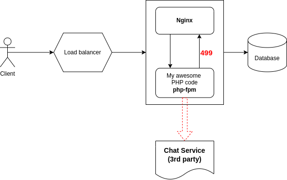 Thế nhưng con nginx (mà bọn mình đặt trước php-fpm) thì lại liên tục báo request 499 và mobile app không gọi được API dẫn đến tê liệt.
