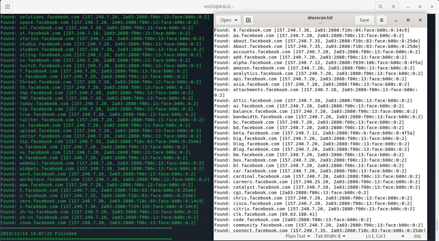 gobuster dns -d facebook.com -w home/vt103/wordlist/common.txt -t 30 -i -o dnsrecon.txt