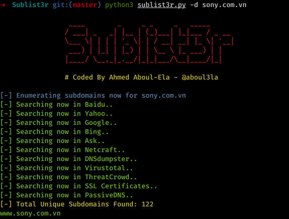 python3 sublist3r.py -d sony.com.vn