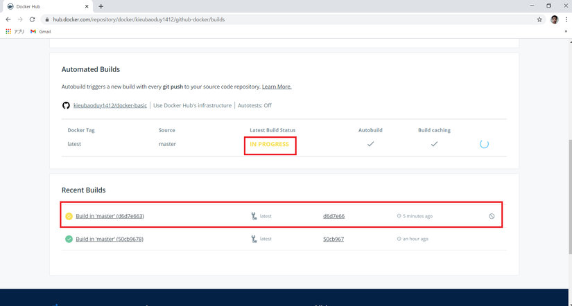 DockerHubにて正常にビルドした後で再度ImageをPullし実行する