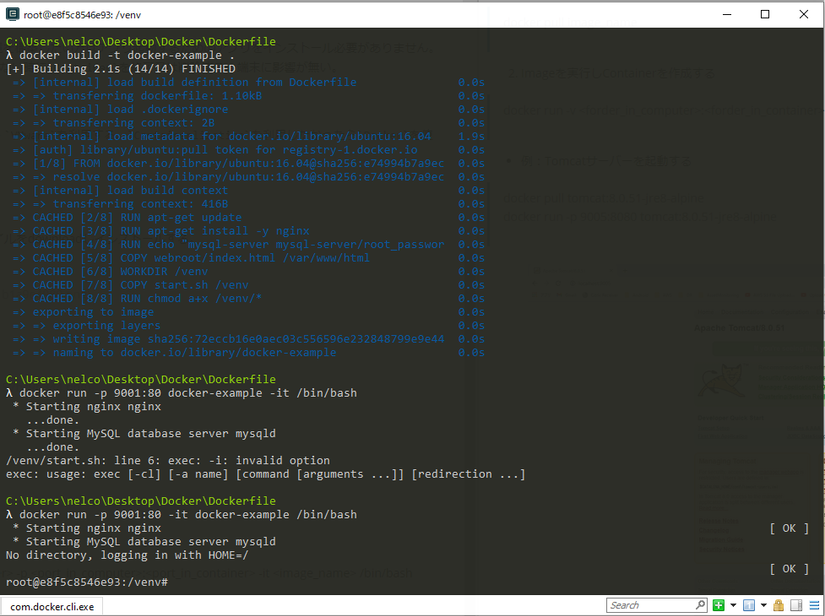 - -it: Containerを起動し/bin/bashでTerminalを開く