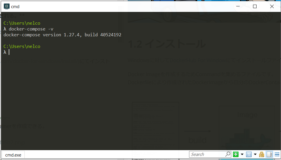 DockerCompose をダウンロードしインストールする。