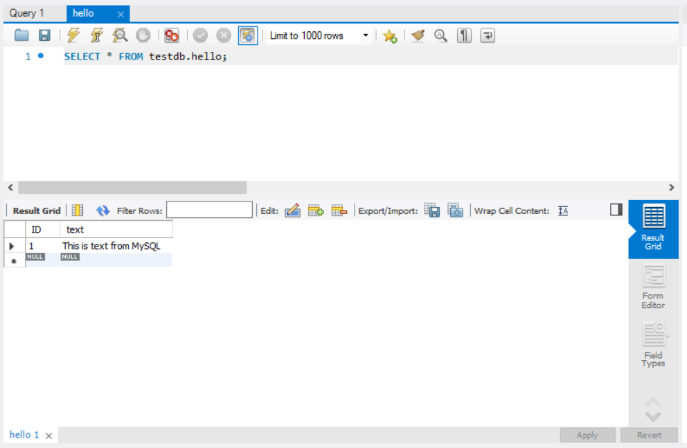 CREATE TABLE hello (