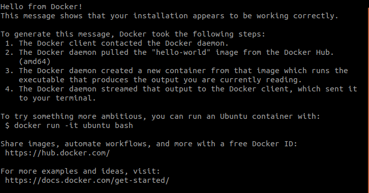 Xác nhận kết quả cài đặt thành công bằng việc run image hello-world