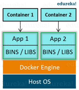 Trong sơ đồ trên, bạn có thể thấy rằng có một hệ điều hành máy chủ được chia sẻ bởi tất cả các containers. Container chỉ chứa các thư viện ứng dụng cụ thể riêng biệt cho từng container và chúng nhanh hơn và không lãng phí bất kỳ tài nguyên nào.