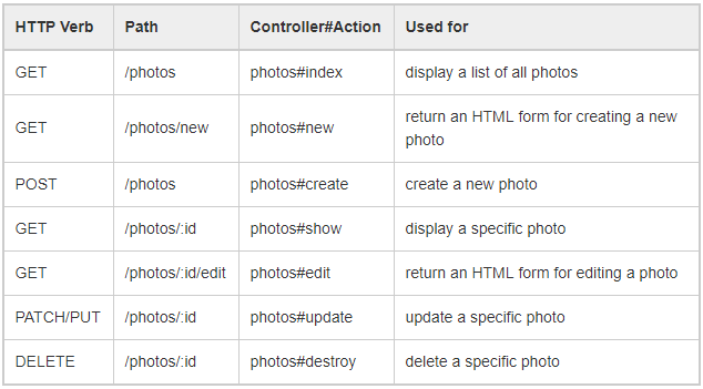 | HTTP Verb | Path | Controller#Action | Named Helper |