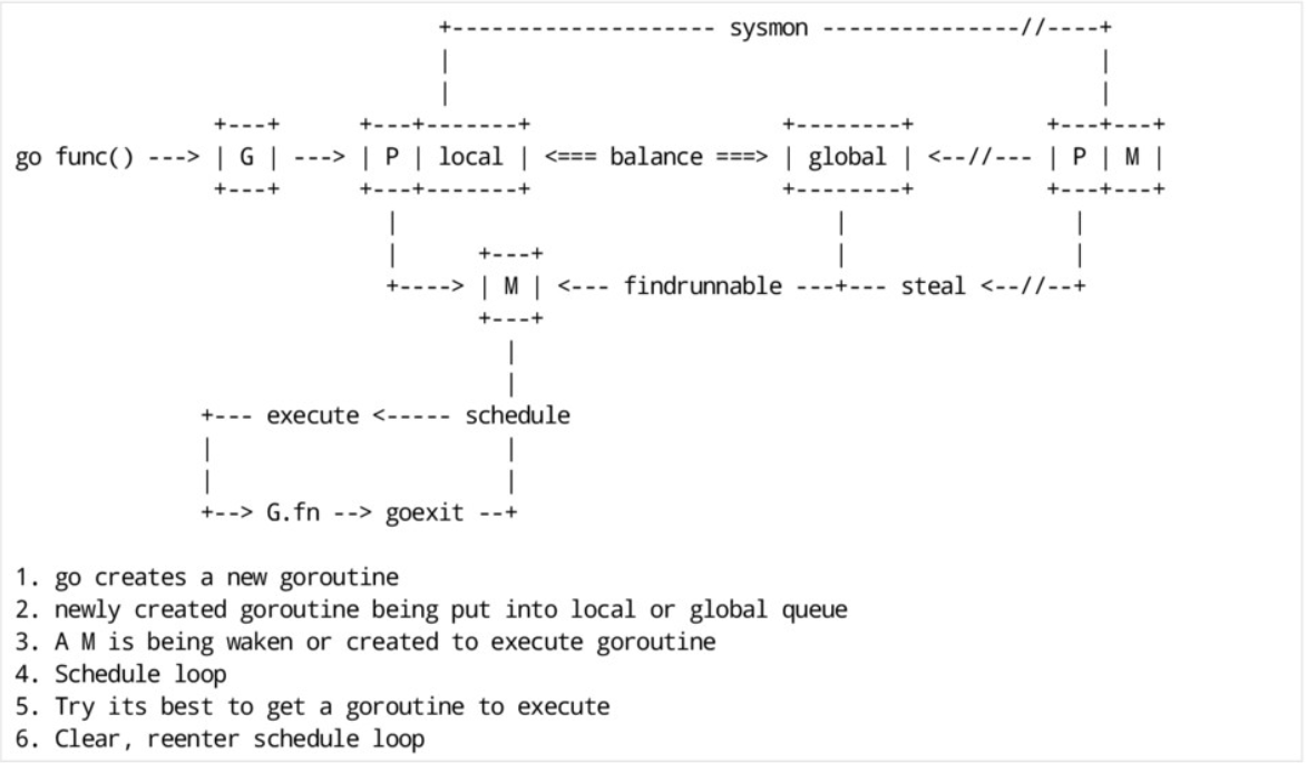 - Như các bạn thấy có 2 loại queue trong golang là global queue và local queue, và mỗi P duy trì một chuỗi G đang chạy.