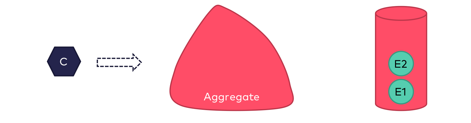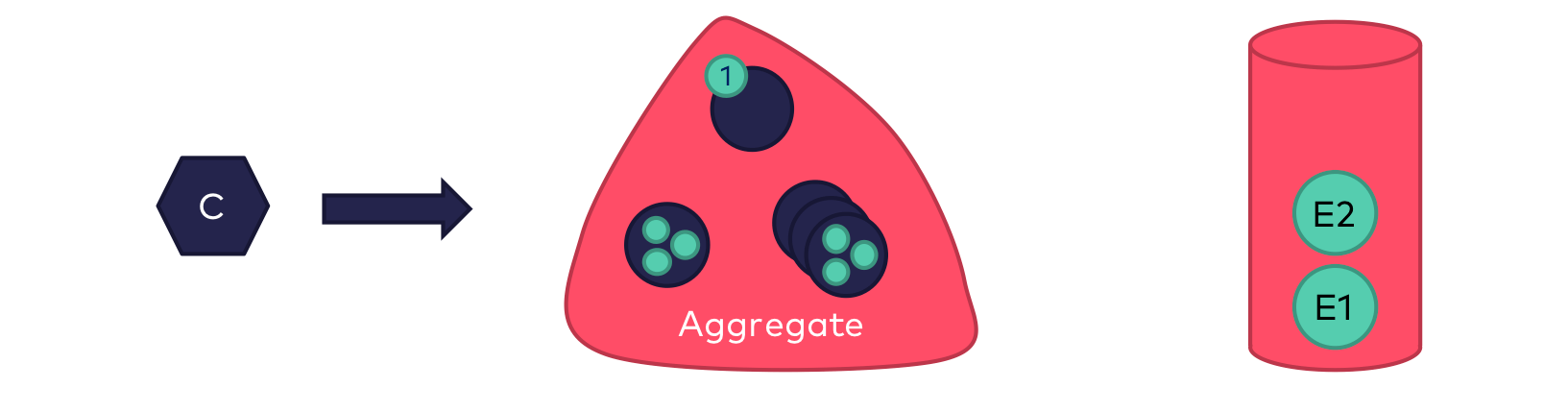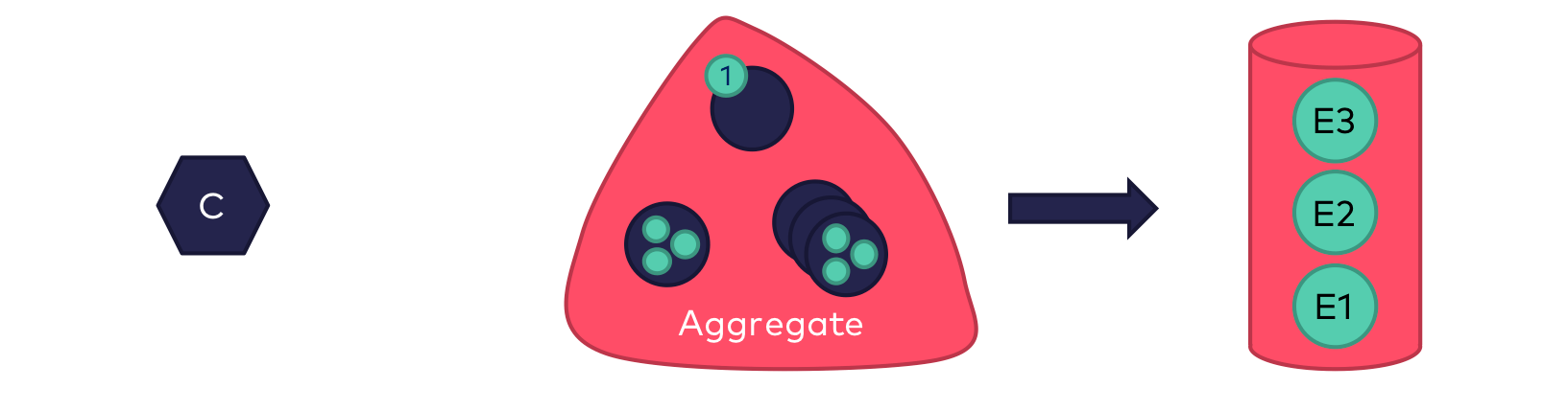 Yêu cầu được chấp nhận bởi aggregate, xác nhận trạng thái hiện tại và xử lý,..Domain logic tương ứng được thực thi. Tại thời điểm đó, chưa có trạng thái nội bộ nào của aggregate bị thay đổi, điều này chỉ được thực hiện sau khi việc xử lý event tạo ra trong quá trình triệu gọi.