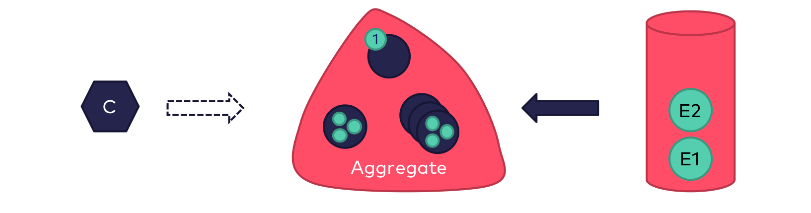 Trước khi yêu cầu được xử lý, một instance rỗng của aggregate được tạo ra và các events được lưu trữ trước đó chạy lại trên aggregate. Aggregate chỉ đọc trạng thái các event tương ứng và không có business nào được thực thi. Khi hoàn thành, aggregate chứa trạng thái hiện tại của nó trong bộ nhớ.