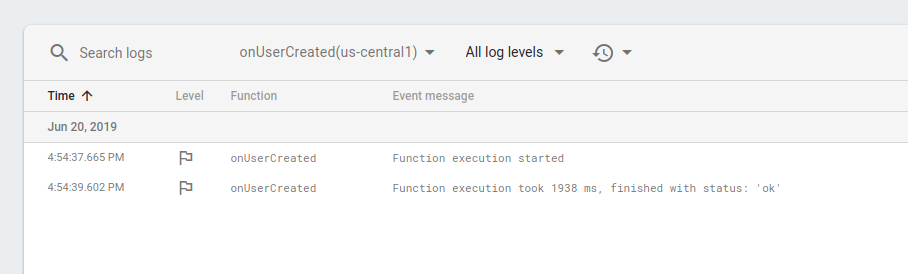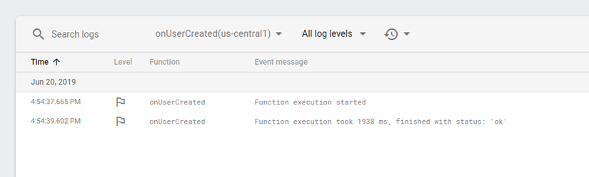 Deploy thành công thì function onUserCreated sẽ xuất hiện bên ở dashboard của mục Functions trên Firebase nhé