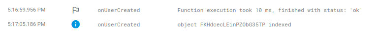 Mình dùng onCreate của Firebase Functions để lắng nghe thay đổi của document "user" trên Cloud Firestore. Mỗi 1 record data được index trên Algolia đều sẽ có 1 objectID duy nhất. Nếu lúc đưa data lên các bạn không quy định cho nó 1 giá trị nhất định thì Algolia sẽ tự sinh ra 1 objectID nhé. Ở đây mình dùng luôn key của document_id của user để làm objectID trên Algolia.