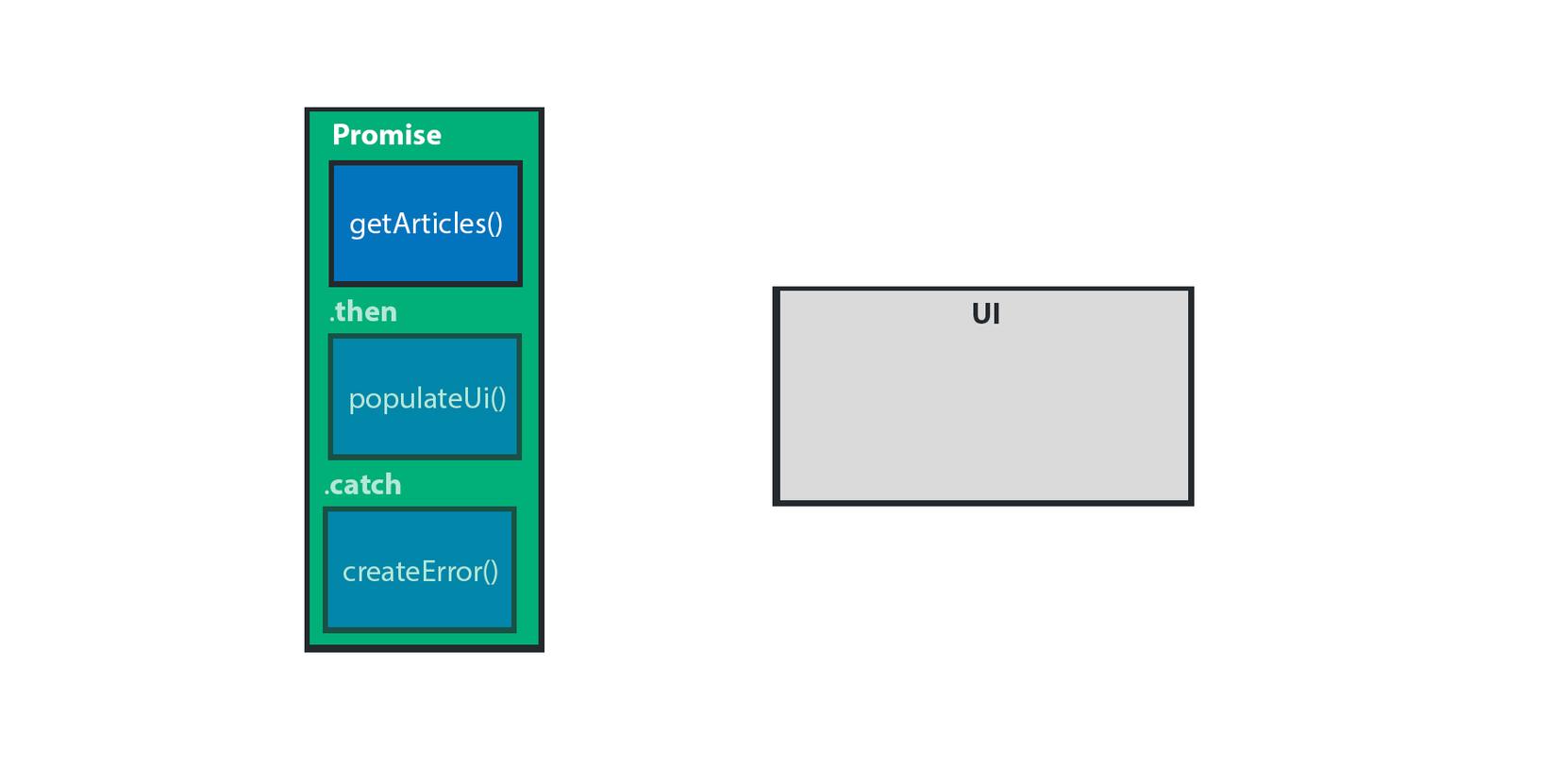 Để populateUi được dùng, chúng ta sử dụng then - một hàm trên Promise để thêm function callback xử lý dữ liệu.