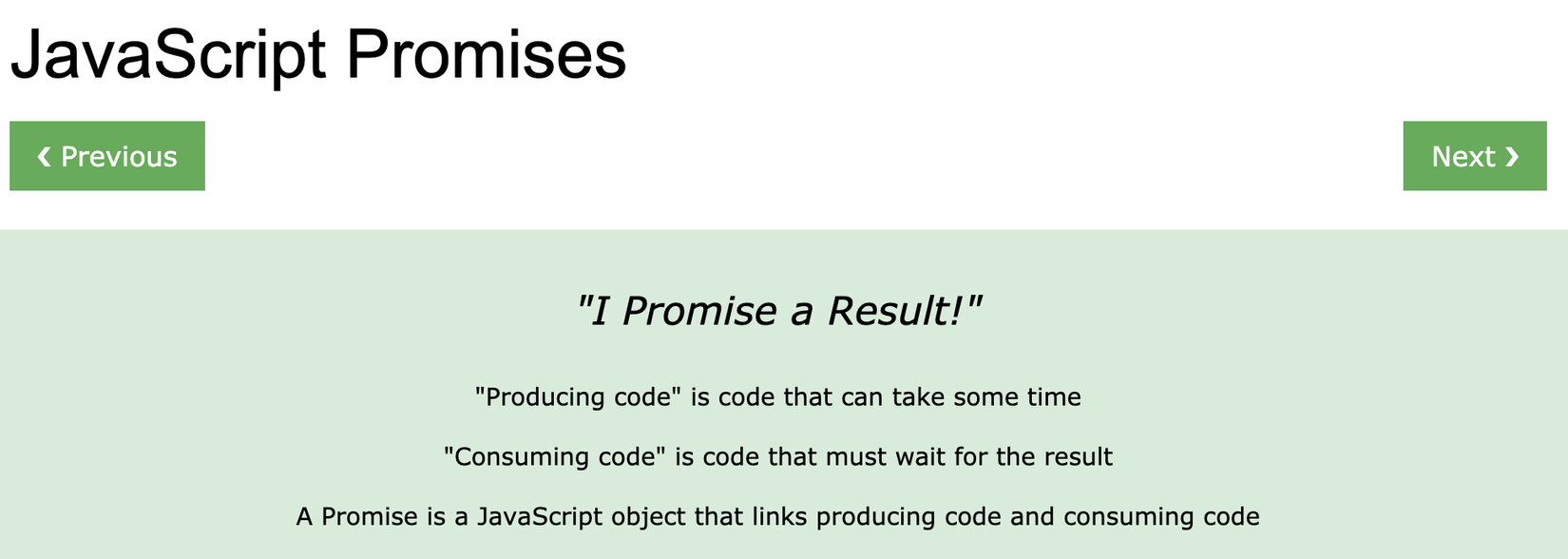 // "Consuming Code" (Must wait for a fulfilled Promise)