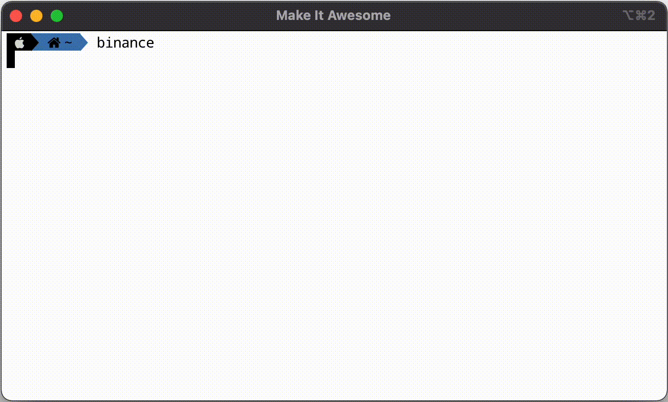 $ cd binance // di chuyển vào 🧊 binance-cli