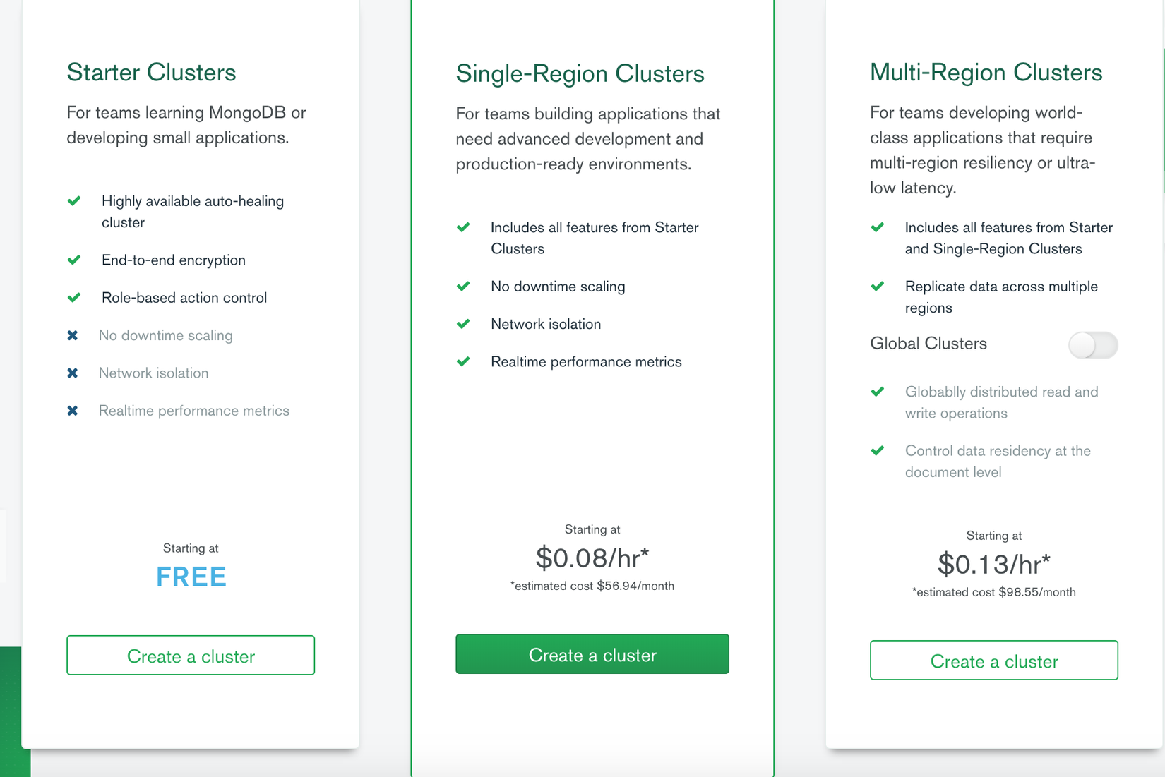 MongoDB Atlas là cloud database của MongoDB được ra mắt vào năm 2016 chạy trên AWS, Microsoft Azure và Google Cloud Platform.