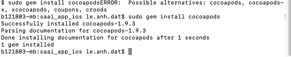 - Cài đặt Cocoapods bằng Ruby mặc định của MacOS.