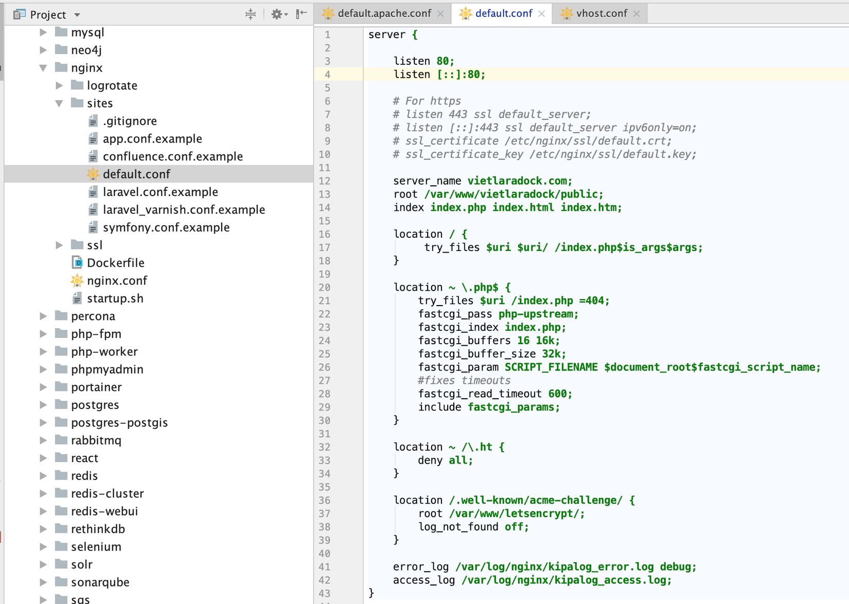 Đây là config cho nginx còn nếu apache thì chuyển đến folde apache2/sites nhé