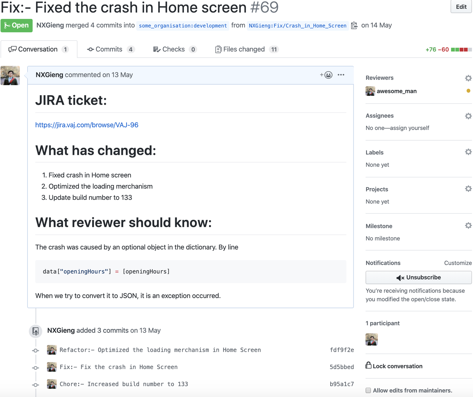 Trên đây là một vài lưu ý nhỏ của mình khi tạo 1 pull request với commit-messages được viết rõ ràng. Để người review hoặc đồng nghiệp có thể hiểu được nội dung pull request của bạn.