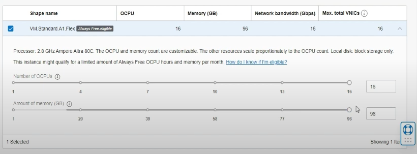 Ngoài các mục miễn phí được đề cập trên trang chủ, trong 30 ngày dùng thử, người dùng có thể tạo Instance với sharp VM.Standard.A1.Flex lên đến 96GB RAM free. Hết 30 ngày, con số GB RAM free tối đa đối với VM.Standard.A1.Flex sẽ quay về 24GB.