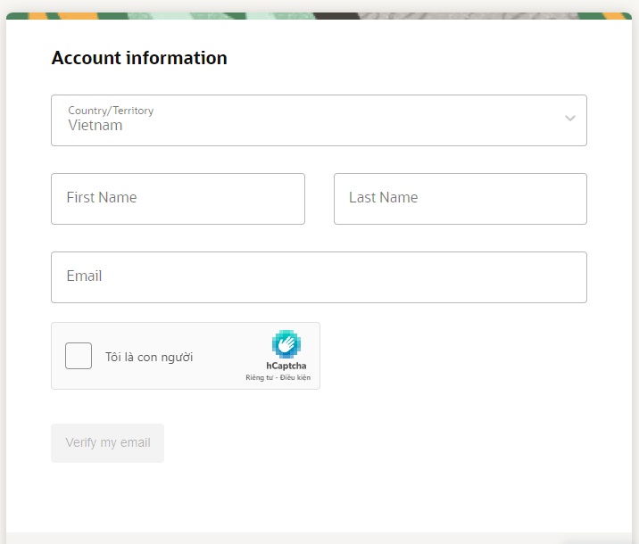 - Tiếp theo, điền thông tin Country, First Name, Last Name và Email, sau đó bấm nút để Oracle gửi email xác nhận tài khoản: