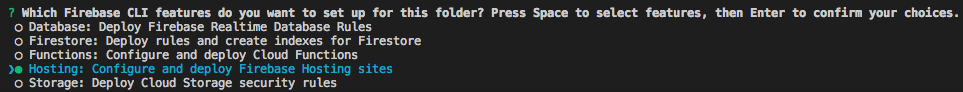 Ở terminal sẽ chạy firebase CLI với một số lựa chọn như sau: