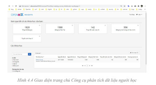 Khi người học tương tác với mỗi khóa học trong hệ thống bằng cách tham gia khóa học, xem video và các sự kiện có thể thu thập khác, thì các sự kiện tương tác này sẽ được thu thập và đưa sang công cụ phân tích dữ liệu – Open edX Insights để phân tích và lưu trữ.