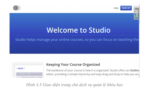 Open edX Studio là dịch vụ cho phép người dạy tạo và thiết lập các khóa học. Giao diện dịch vụ Open edx Studio:
