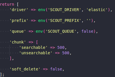 driver: Trường này xác định trình tìm kiếm mà Laravel Scout sử dụng.