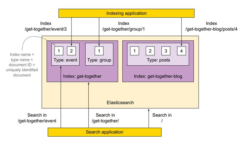 Sự kết hợp index-type-ID giúp xác định duy nhất một document trong data Elaticsearch của bạn. Khi bạn tìm kiếm, bạn có thể tìm tài liệu theo type cụ thể đó, của index cụ thể đó hoặc bạn có thể tìm kiếm trên nhiều loại hoặc thậm chí nhiều indices