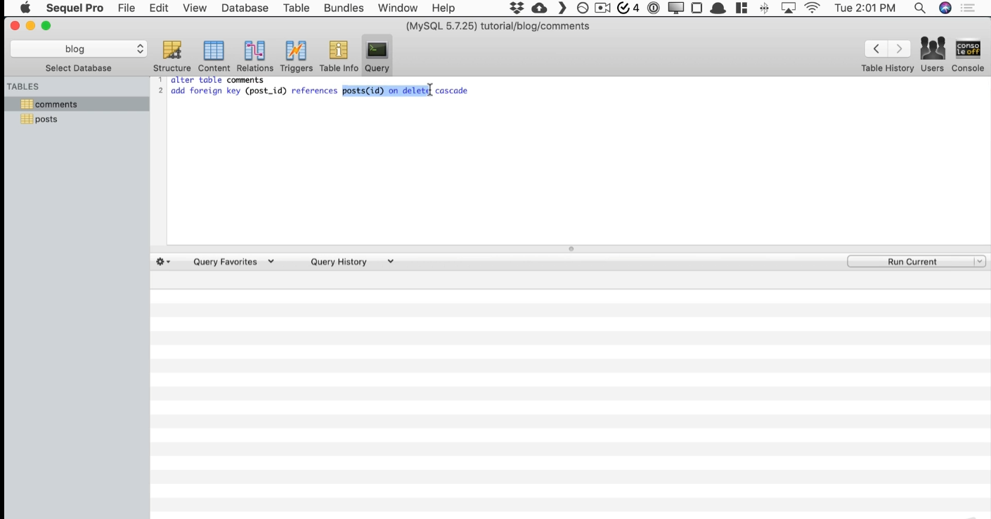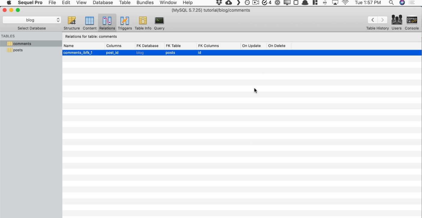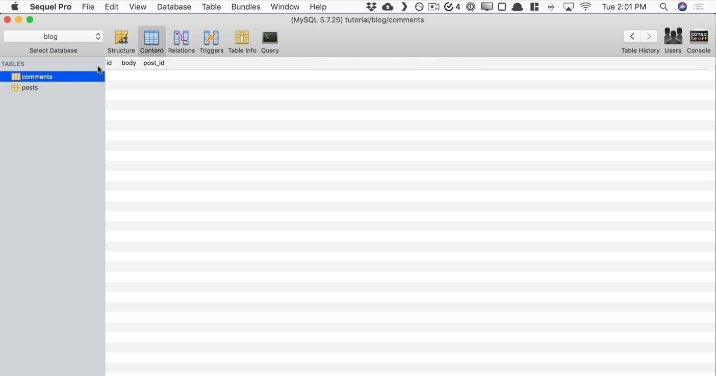 Để bắt đầu tìm hiểu Foreign Key Constraints là gì thì chúng ta sẽ cùng tạo 1 cơ sở dữ liệu blog bao gồm 2 bảng posts và comments