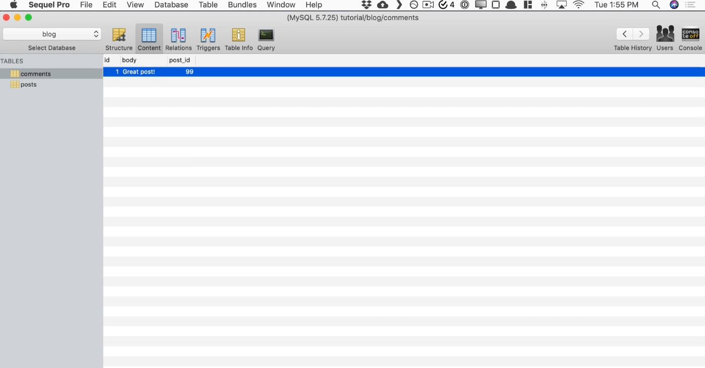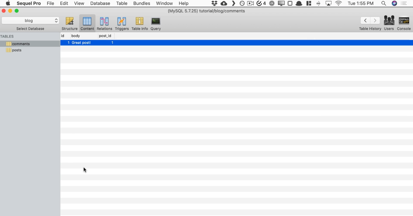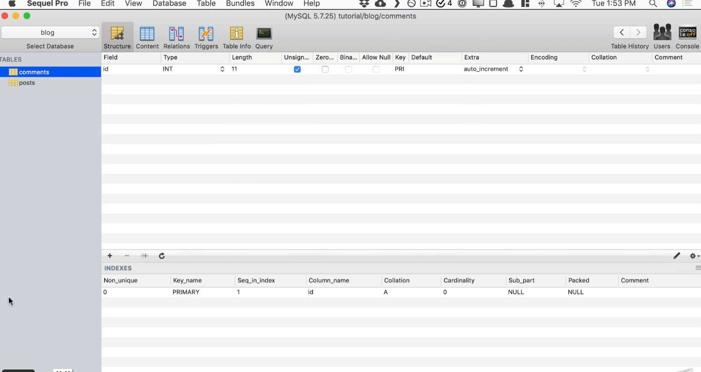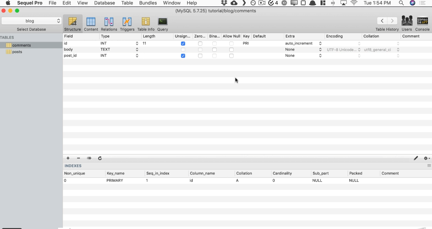 Để bắt đầu tìm hiểu Foreign Key Constraints là gì thì chúng ta sẽ cùng tạo 1 cơ sở dữ liệu blog bao gồm 2 bảng posts và comments